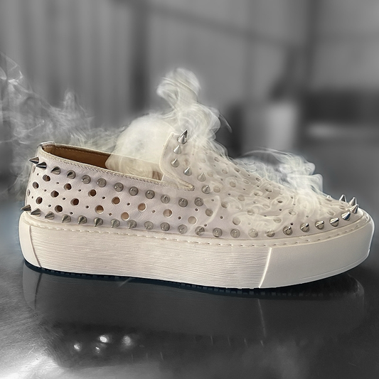 White spike loafers